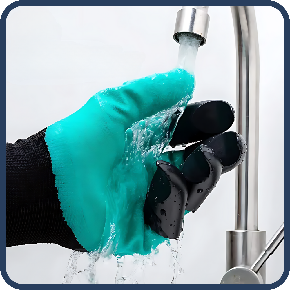 Dank ihres wasserdichten Designs halten unsere Handschuhe deine Hände selbst bei den nassesten Tätigkeiten trocken, wie beim Gießen von Pflanzen oder Arbeiten in feuchten Böden. Darüber hinaus macht ihre abwaschbare Oberfläche sie leicht zu reinigen und sorgt für vollständigen Schutz ohne hartnäckigen Schmutz.